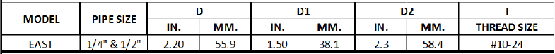- The Model Numbers listed show Viton seals. For EPDM seals (optional) change 'V' to 'EP'. ex: EAST2EP6W11.