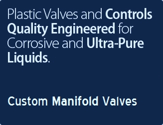 Manifold body materials are Natural Polypropylene, Geon PVC, Kynar PVDF, and Corzan CPVC. Other materials on request. Minimum order levels and engineering charges apply on all custom manifolds. Manifolds can be daisy-chained to create a higher number of valves. The manifold shown below is effectively a five-way valve based on four air-operated shutoff valves.