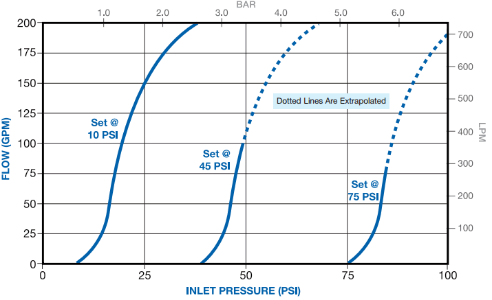 - Offer wide range of pressure settings from 5-100 PSI (0.4-8.0 BAR)