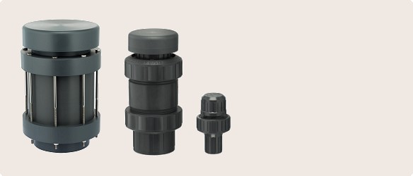 Series CK/CKD/CKM/CKS Check Valves This is the general check valve page, and it may be the page you linked to this one from. As you may know, vacuum breakers are a check valve that is fitted with a special protective cap. Without the cap, the check valve is subject to all sorts of environmental hazards, so we recommend a true vacuum breaker be used for vacuum breaker applications. But -- as stated above -- in some cases you may want to break the tank vacuum by drawing air (or other) from an alternate location. In these and other cases, it is more appropriate to use a check valve with the appropriate piping. Please use the check valve link, or contact our Technical Group at (973) 256-3000 for assistance.